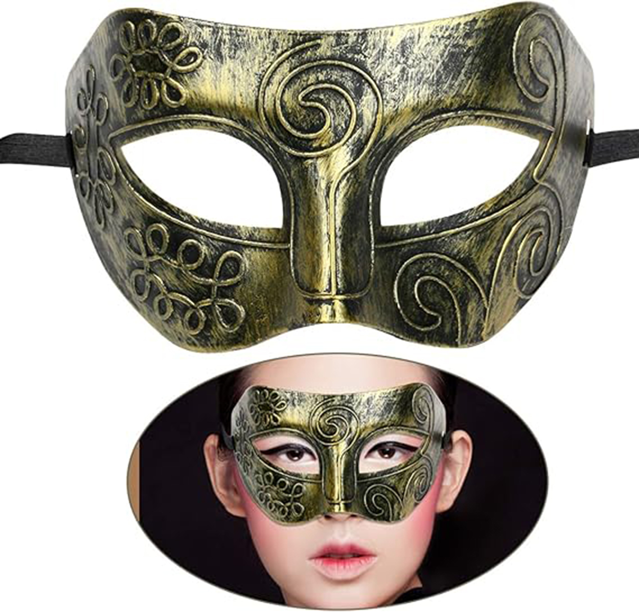 ???? Stilinizi tamamlayın ve etkileyici bir görünüm elde edin! Vintage ve gotik dokunuşlarıyla tasarlanan bu altın eskitme maske, herkesin ilgisini çekecek.